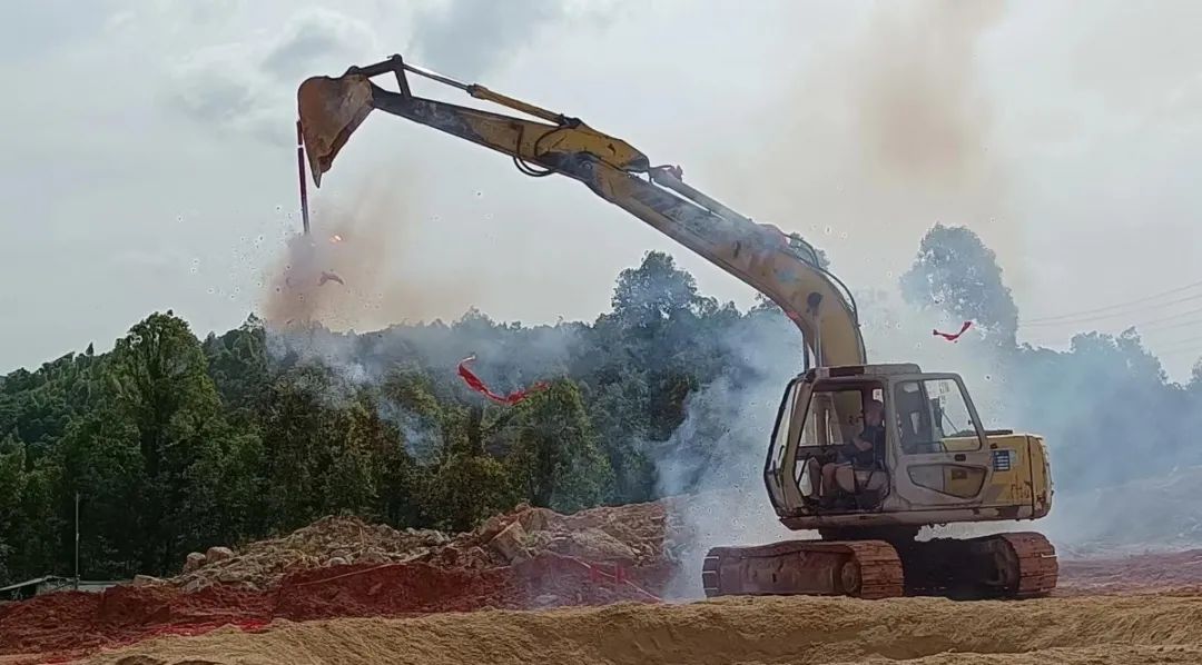 伴随着轰隆的鞭炮声,双方领导挥锹培土奠基
