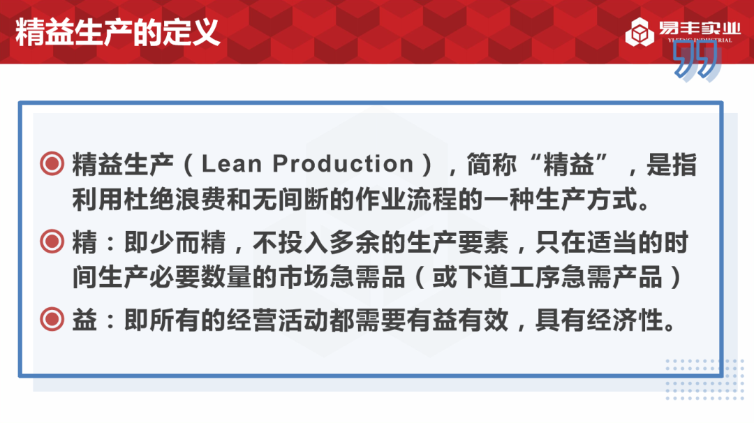 为加强易丰骨干员工的培养及储备管理,激励员工持续提升个人管理素质和工作技能,有效促进人才梯队建设,特组织开展主题丰羽计划人才专项集训。12月20日晚,我们有幸邀请到工程管理中心主任李林雲讲师开展《精益化生产》的专题培训。一起来回顾一下本期的精彩培训吧!
